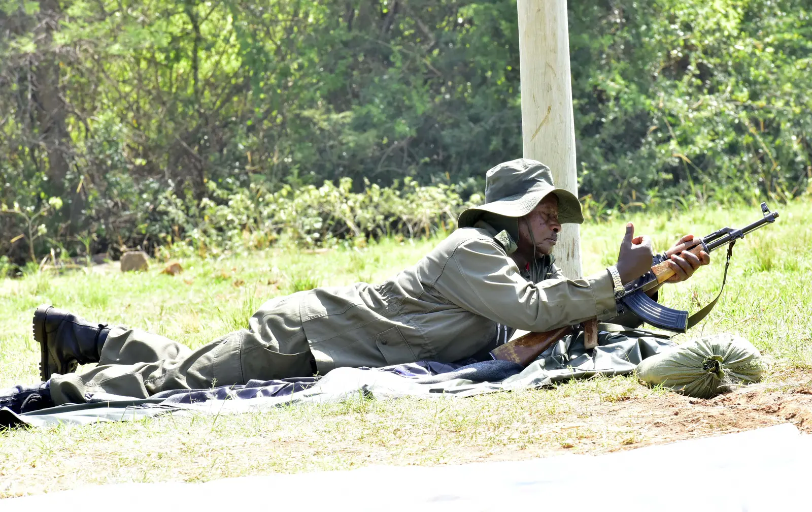 President Yoweri Museveni who is also the Commander in Chief of Uganda’s Armed Forces has today exhibited his expertise, tactics and skill at a shooting range exercise in Kyankwanzi.