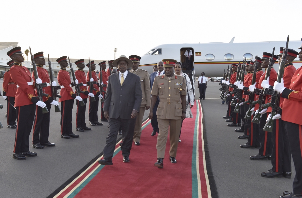 The President who arrived to a colourful welcome party mounted by Kenya armed forces was received at Jomo Kenyatta International Airport by Kenya’s Minister of Foreign Affairs Amina Muhammed and Uganda’s Minister of Foreign Affairs Sam Kutesa among other officials.