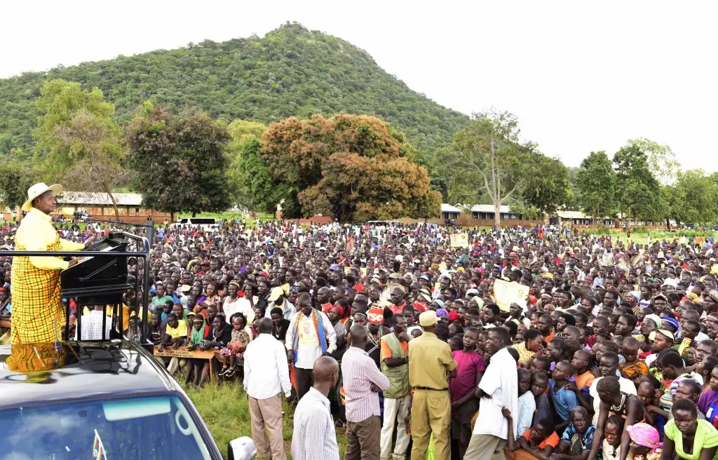 President Yoweri Kaguta Museveni today was in Karenga Subcounty, Dodoth West in Kaboong District, where he was campaigning for Ms Rosely Akello Nakwera, the NRM flag bearer for the district Woman MP seat.