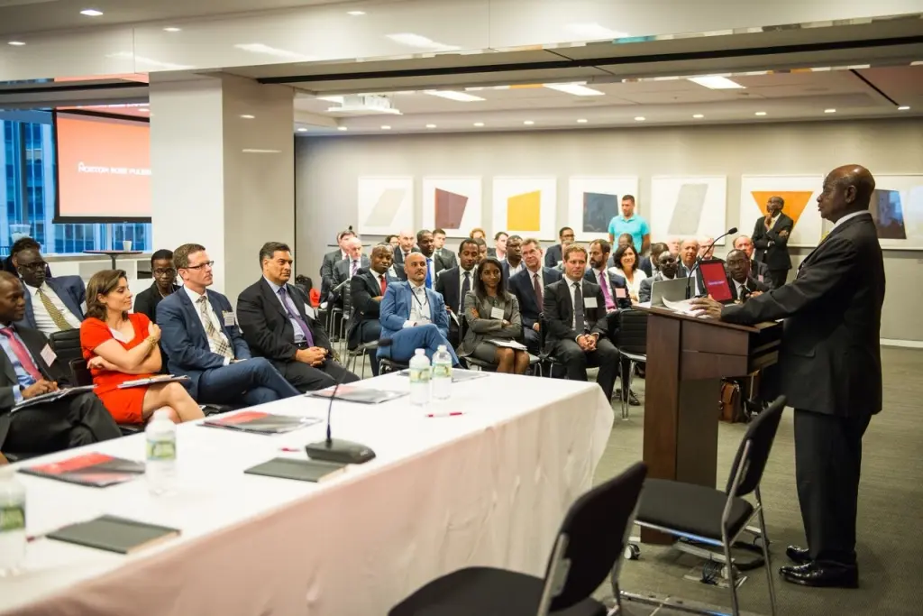 Investors where from companies like The Blackstone Group, Sithe Global Power, Symbion Power, Denham Capital Management, General Electric, John Deere, American Tower, Africa Integras, Kuramo Nile Capital, 8B and several other major companies, to discuss investment opportunities within the infrastructure, energy, mining, healthcare, ICT and agriculture sectors in Uganda.
