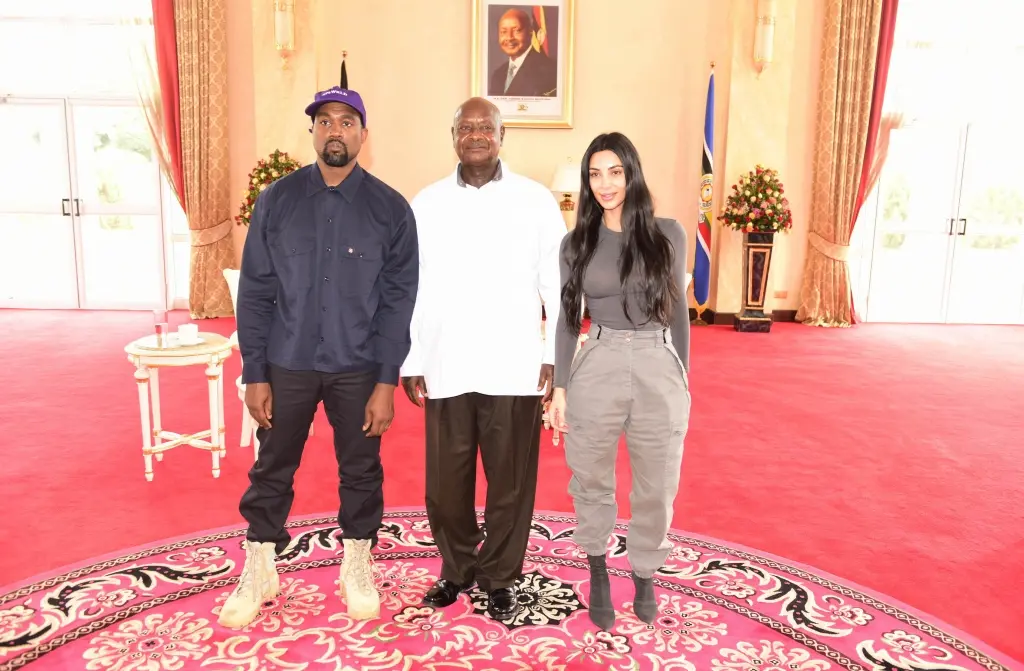 President Yoweri Museveni has met with the visiting American rapper, Kanye Omari West and his wife, Kim Kardashian, who paid a courtesy call on him this morning at State House, Entebbe.