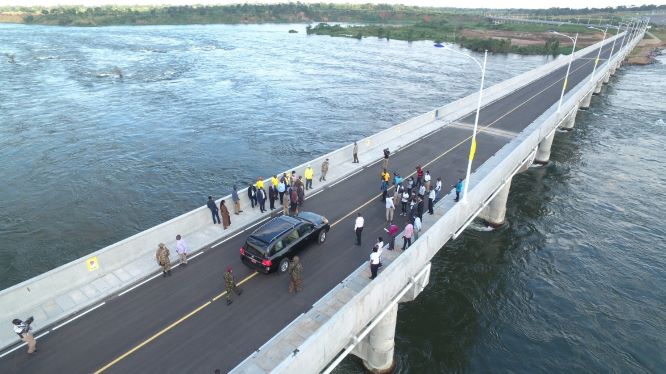 President Yoweri Museveni has commissioned the newly completed Isimba Bridge comprising two bridges with one measuring 435 metres and the other 475 metres, both linked by a road at Koova Island on Lake Victoria connecting Kayunga and Kamuli districts.